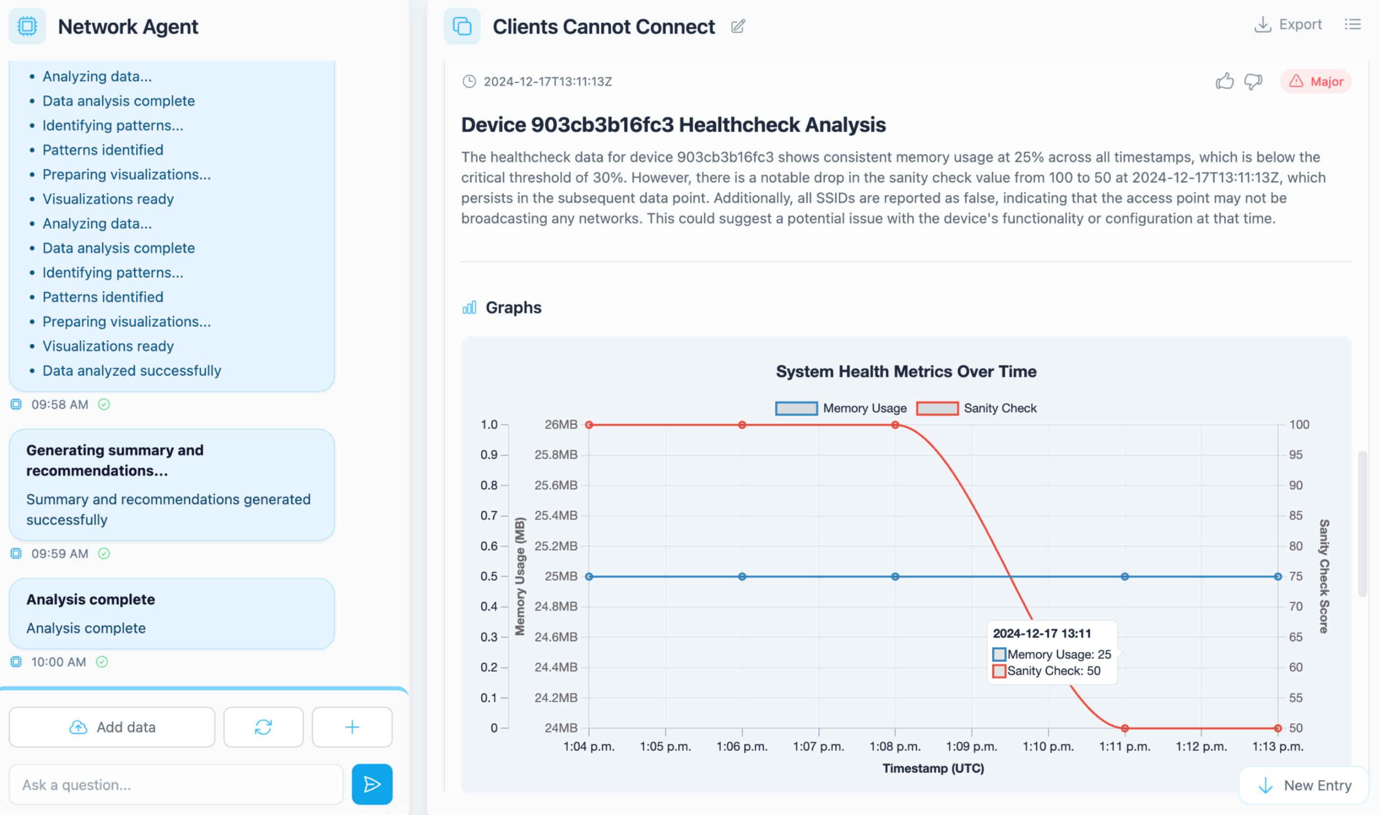 Leverage intelligent AI agents for automated workflow execution. Our AIOps platform autonomously performs root cause analysis and network remediation.